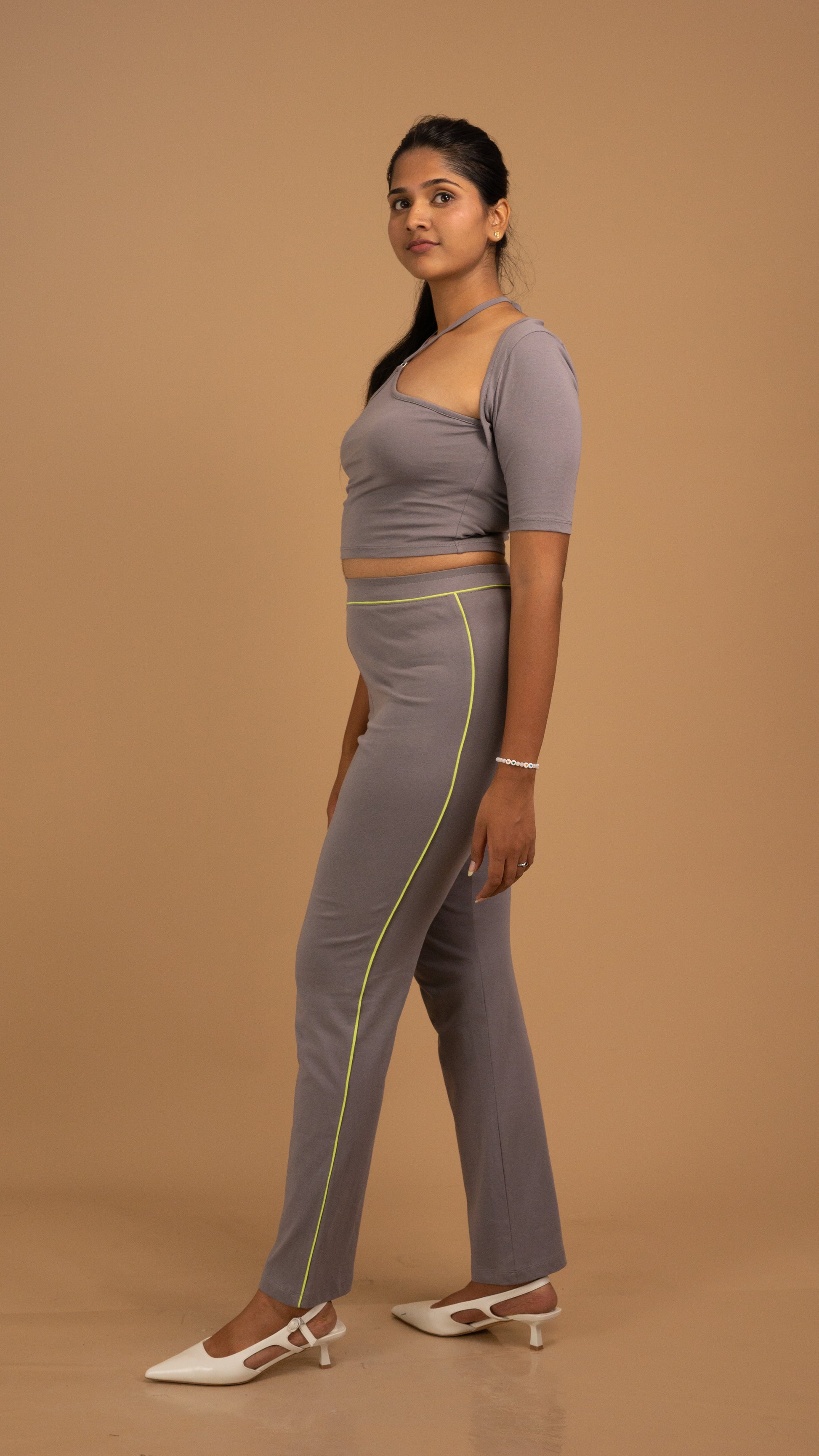 The Ash Serenity Cotton Co-ord Set redefines modern elegance with its clean lines and sculpted drape. Crafted from premium, breathable cotton, this ensemble pairs a statement knotted high-neck top with sleek tailored trousers for a look that’s equal parts poised and relaxed. The muted ash tone exudes understated luxury, making it perfect for both elevated daywear and refined evening gatherings.