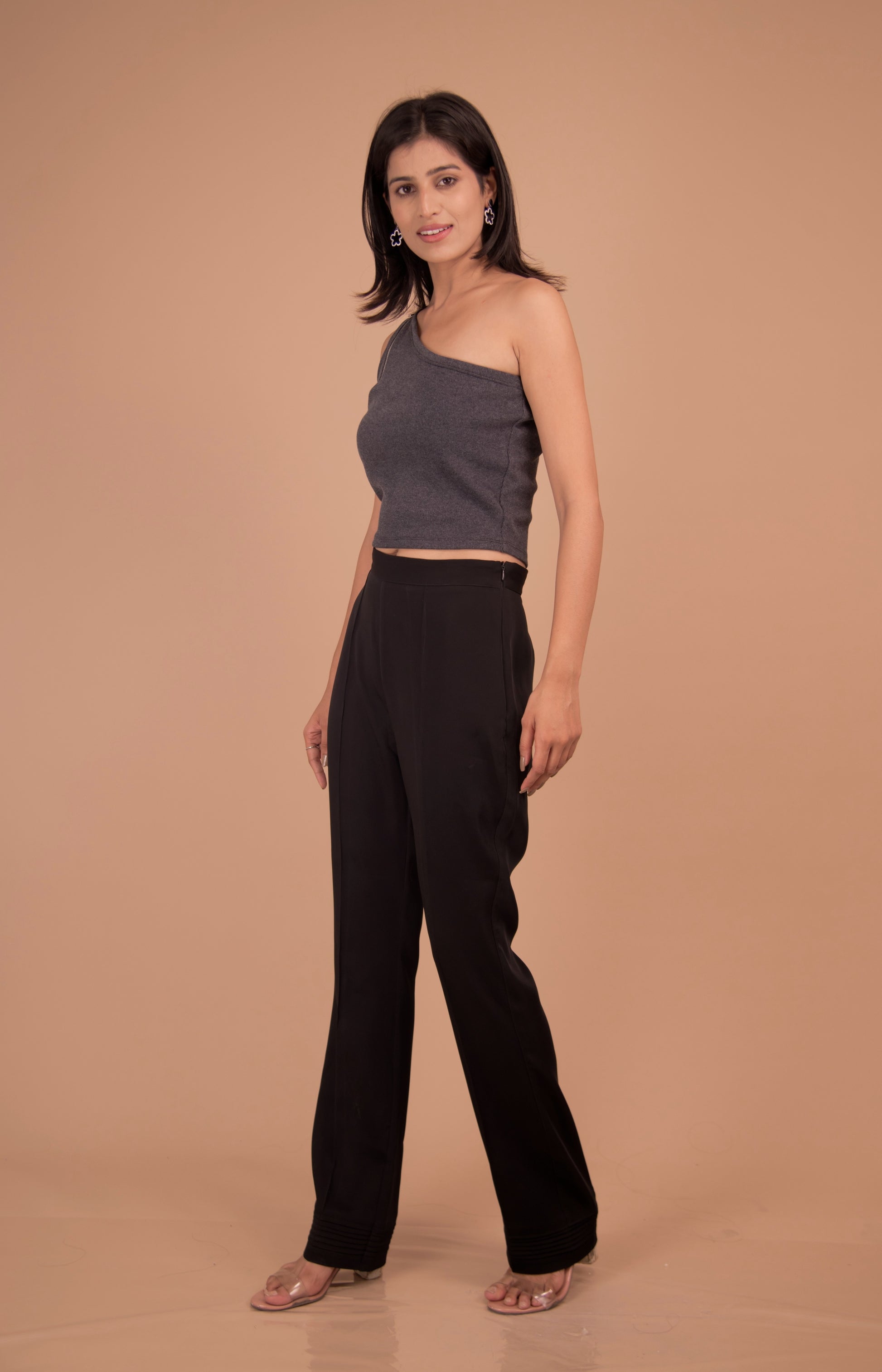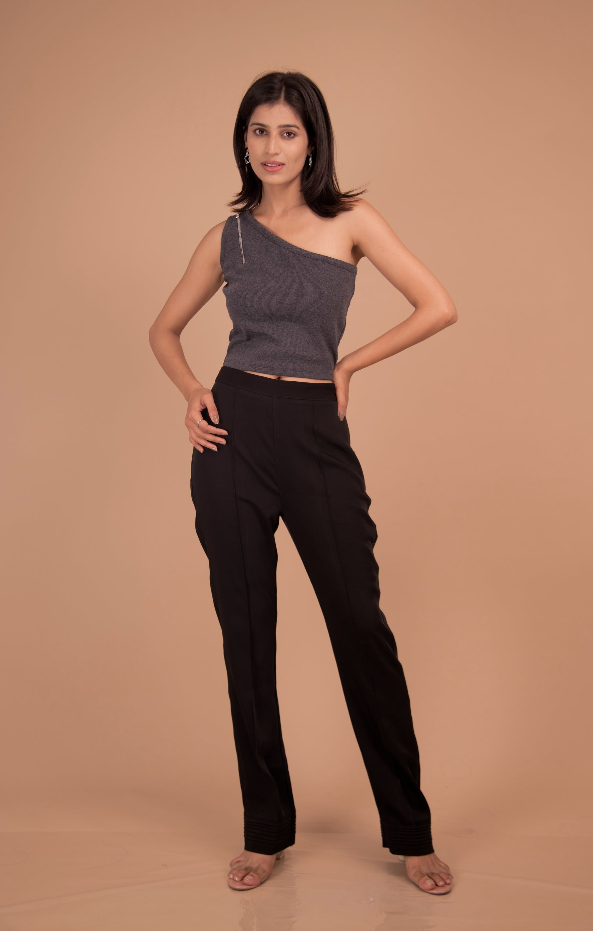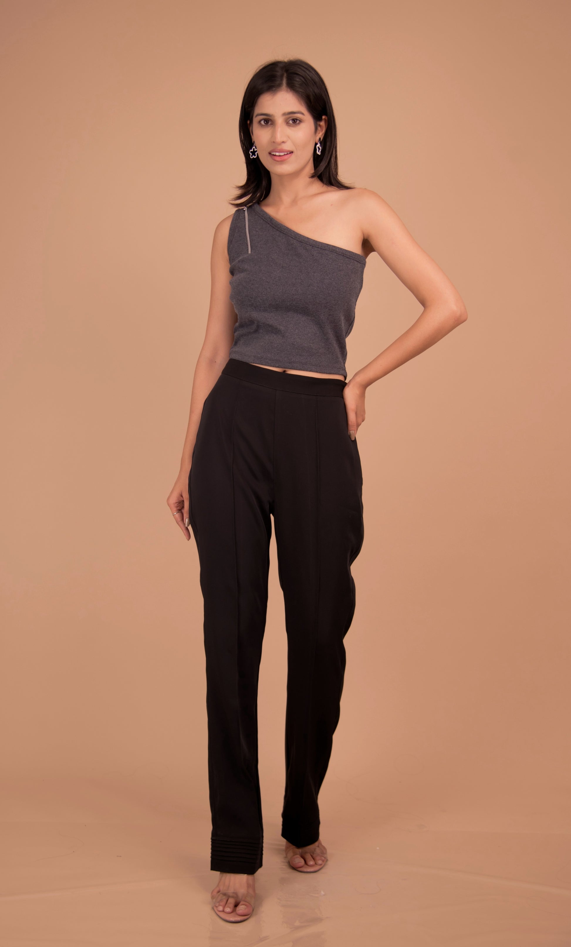 Elevated minimalism — reimagined. This impeccably tailored co-ord pairs a sculpted one-shoulder crop top with a high-rise, straight-leg trouser to create a quietly powerful silhouette. Cut from a premium cotton-blend for a soft hand and breathable wear, the set balances the ease of day dressing with the polish of evening tailoring. Clean lines, considered seams and an impeccable fit make it a covetable wardrobe cornerstone for the modern wardrobe.