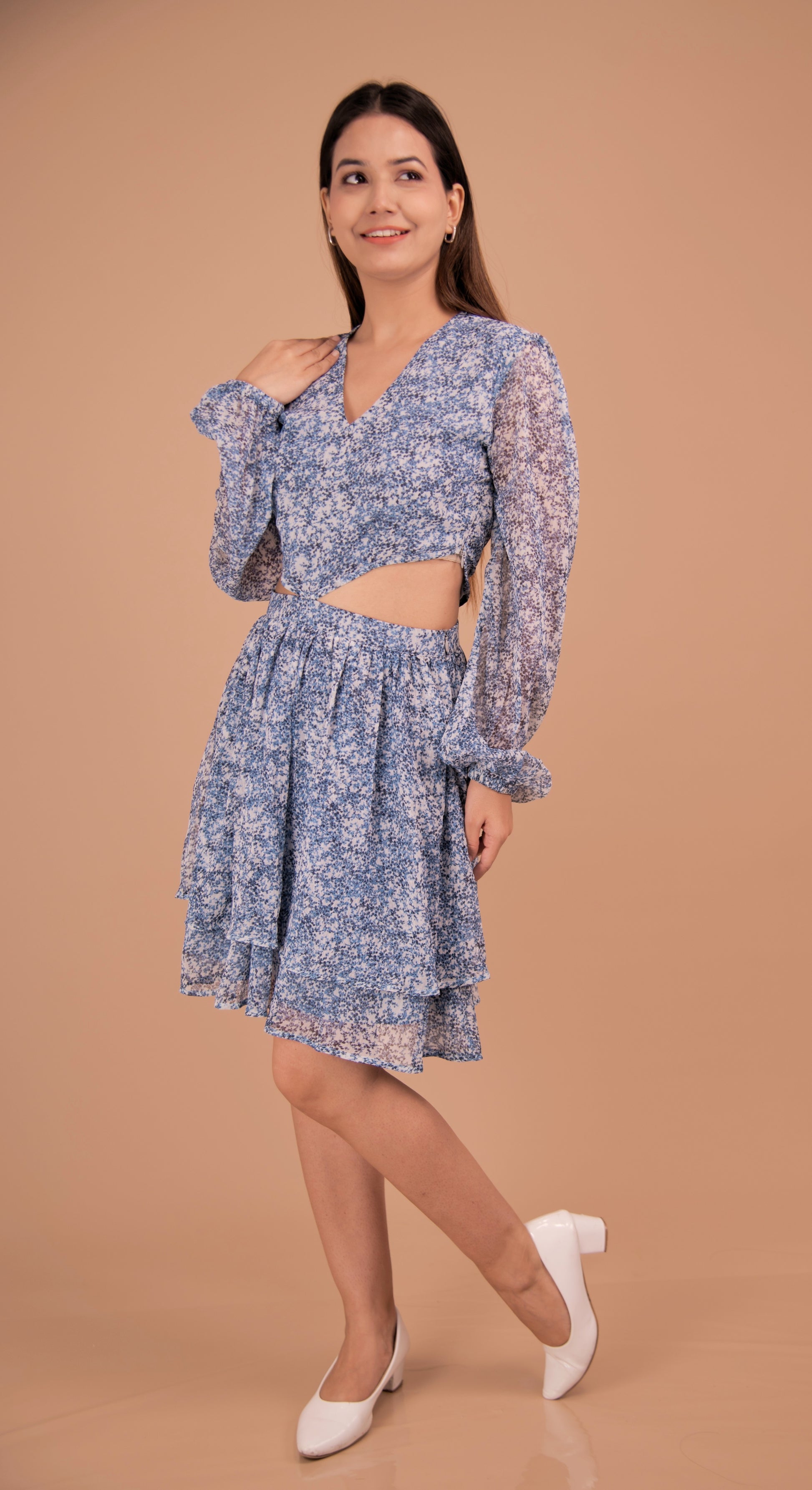 Azure Bloom — Cutout Tiered Chiffon Dress