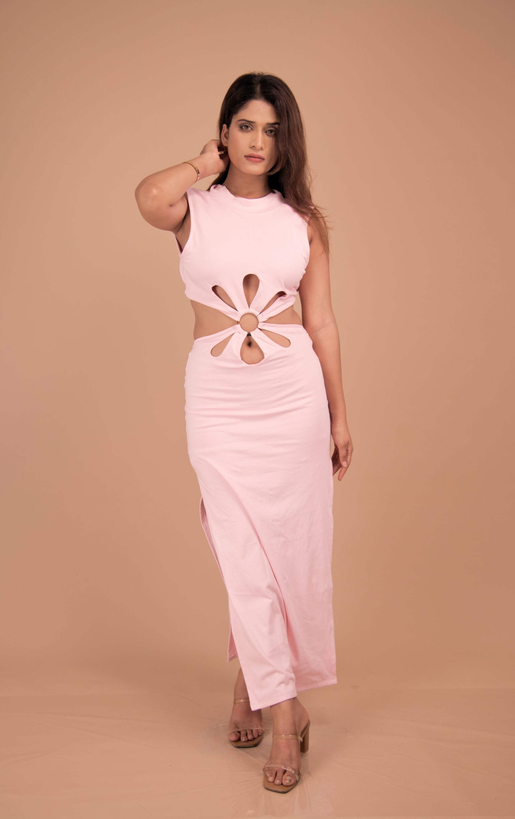 Tailored in premium cotton for a soft yet structured feel, this body-skimming maxi features precision cutouts with a central ring detail and a subtle side slit for movement. Minimal seams and a clean finish create a refined silhouette that flatters the figure. Ideal for resort evenings, elevated brunches, summer soirées, or destination events—wear it day to night with refined accessories.
