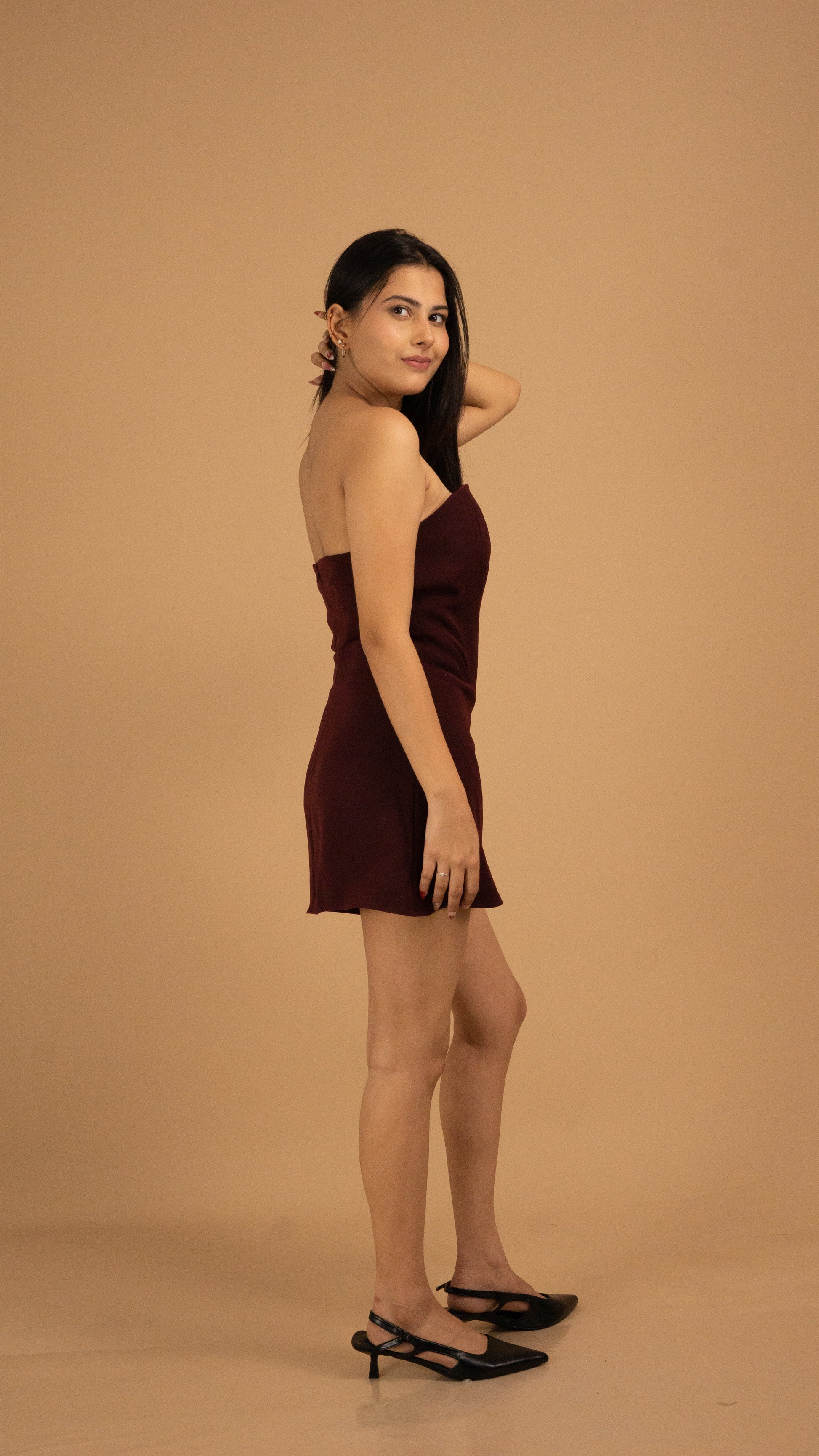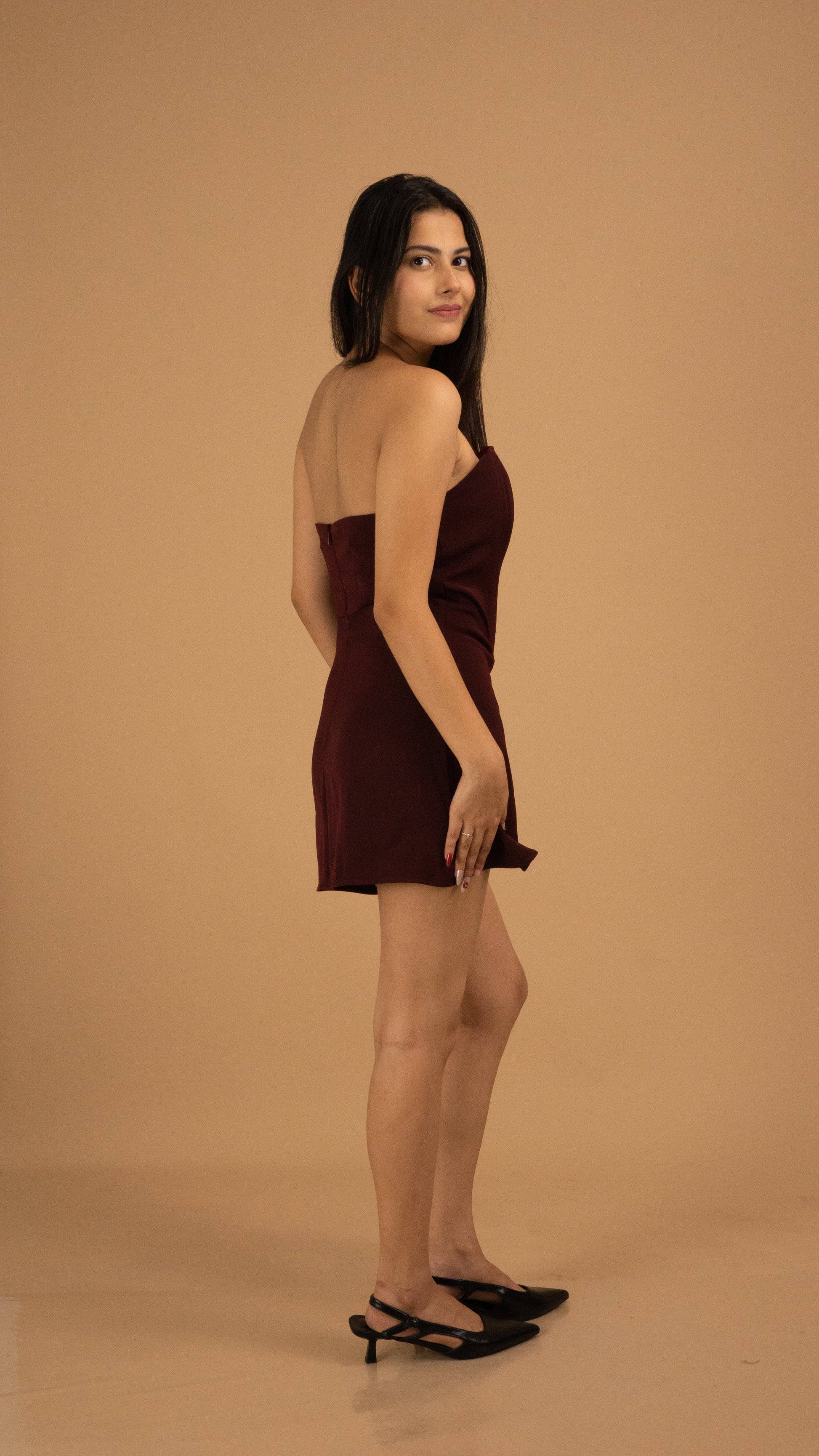 Effortless sophistication meets all-day comfort in our Bordeaux Strapless Luxe Dress. Tailored from sumptuous, high-quality fabric in a deep tone, this minimalist silhouette embraces your curves with precision while allowing complete ease of movement. The clean, strapless design exudes modern elegance, making it a versatile statement for glamorous evenings or intimate celebrations. A timeless piece for the woman who seeks refined luxury without compromising on comfort.